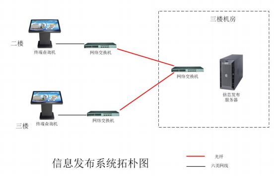 一樓安裝多媒體信息查詢、發(fā)布及引導(dǎo)系統(tǒng)。采用落地式觸摸屏,由機房中央服務(wù)器統(tǒng)一進(jìn)行信息